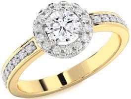 Diamond Platinum & Yellow Gold Halo Round Pave Engagement Ring