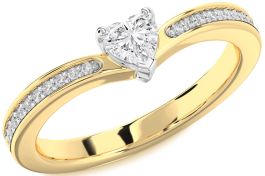 This dazzling ring features a radiant heart-shaped center diamond, perfectly set in a polished yellow gold band. The shoulders of the band are embellished with a row of brilliant accent diamonds, enhancing its sparkle and charm. A blend of elegance and romance, it symbolizes everlasting love and makes a beautiful choice for a heartfelt promise or engagement.