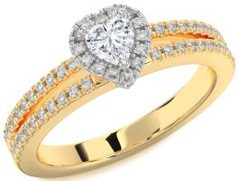 This dazzling promise ring showcases a brilliant heart-shaped diamond at its center, embraced by a shimmering halo of round accent stones. The dual-row diamond band enhances the sparkle, set in rich yellow gold for a classic and elegant touch. A timeless promise ring that beautifully symbolizes love, loyalty, and devotion in a meaningful and luxurious design.