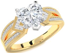 Diamond Platinum & Yellow Gold Heart Vintage Engagement Ring