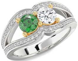 Diamond Platinum & Yellow Gold Round Two Stone Promise Ring