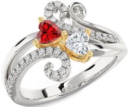 Diamond Platinum & Yellow Gold Two Heart Promise Ring
