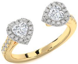 Elevate your love story with this dazzling two-stone heart Promise Ring. Each heart-shaped centerpiece is framed by a radiant halo of pavé-set accents, capturing the essence of romance and sparkle. The graceful open band is further enhanced with shimmering stones that lead toward each heart, symbolizing two lives intertwined. A luminous, meaningful design perfect for celebrating unbreakable bonds.