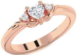 Diamond Rose Gold Heart Three Stone Engagement Ring