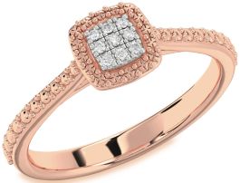 This charming yellow gold Promise ring features a cushion-shaped head adorned with a cluster of round-cut diamonds arranged in a grid pattern, offering a sparkling centerpiece. The surrounding gold frame is delicately engraved with star motifs, enhancing the vintage aesthetic. The shank is accented with beaded detailing, adding texture and character to this elegant and romantic design.