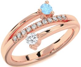 This elegant promise ring showcases a contemporary bypass design, highlighted by two round-cut gemstones—one icy blue and the other classic white—symbolizing unity and balance. A row of brilliant diamonds lines one band for added sparkle. Crafted in gleaming yellow gold, this ring is a striking symbol of love, trust, and shared dreams, making it a perfect promise of forever.
