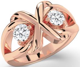 This unique promise ring showcases two dazzling round stones—one soft pink and the other brilliant white—nestled in an elegant crossover design. Crafted in polished yellow gold, the crisscross bands form a bold and modern X symbolizing everlasting connection and unity. A stunning representation of shared love and commitment, perfect as a promise ring.