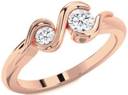 This elegant promise ring features two round-cut stones—one icy blue and the other clear white—cradled in wave-like golden prongs that curve gently around the band. Crafted in polished yellow gold, the flowing design evokes harmony, unity, and lasting devotion. A perfect promise ring to celebrate deep connection, shared dreams, and enduring love with a touch of timeless sophistication.