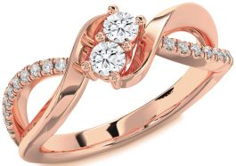 This stunning promise ring features a graceful infinity-style bypass design in radiant yellow gold. At the heart of the ring, two round-cut gems—one soft pink and the other icy blue—are cradled in prong settings, symbolizing unity and enduring love. A line of pavé-set diamonds arcs along the split band, adding brilliance and depth to this meaningful symbol of your everlasting bond.