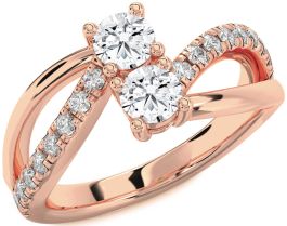 This elegant promise ring showcases two round brilliant-cut center stones—one icy blue and the other white—nestled within a graceful bypass band. The polished gold setting is accented with a row of sparkling diamonds on each side, adding depth and brilliance. A perfect symbol of commitment, this promise ring beautifully captures the harmony of love and unity in every detail.