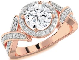 Diamond Rose Gold Silver Halo Round Pave Engagement Ring