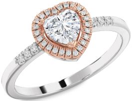 Diamond Rose Gold Silver Heart Halo Engagement Ring