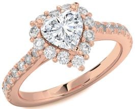 Diamond Rose Gold Silver Heart Halo Pave Engagement Ring