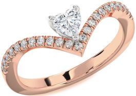 This elegant promise ring features a heart-shaped center stone that sits gracefully at the tip of a sweeping chevron band. Lined with a shimmering row of brilliant accent stones, the band curves into a soft V, creating a romantic frame around the centerpiece. A symbol of love and fidelity, this design combines classic elegance with meaningful style.