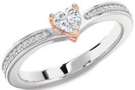 Diamond Rose Gold Silver Heart Pave Promise Ring