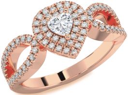 Dazzling and regal, this yellow gold Promise ring showcases a heart-shaped center diamond surrounded by two halos of pavé-set diamonds, amplifying its sparkle and allure. The split shank is adorned with shimmering diamonds in heart-like curves, adding a romantic flourish to the design. Crafted to captivate, this ring is a breathtaking expression of love and sophistication.