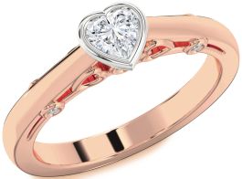 This elegant Promise ring showcases a stunning heart-shaped diamond at its center, bezel-set for a modern and secure look. Crafted in warm yellow gold, the band features intricate scrollwork along the inner gallery, accented by petite round diamonds for a delicate touch of sparkle. Its graceful blend of charm and sophistication makes it a timeless symbol of love and beauty.