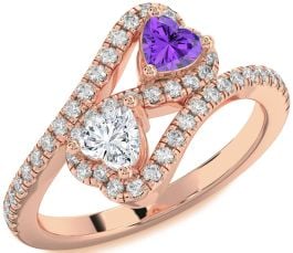 Diamond Rose Gold Silver Infinity Two Heart Promise Ring