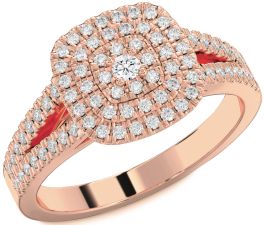 Diamond Rose Gold Silver Halo Round Pave Promise Ring