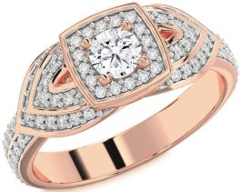 Diamond Rose Gold Silver Halo Round Pave Promise Ring