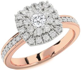 Diamond Rose Gold Silver Halo Round Pave Promise Ring