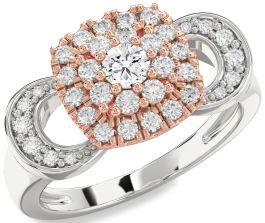 Diamond Rose Gold Silver Halo Round Promise Ring