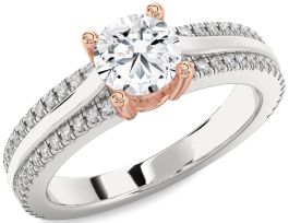 Diamond Rose Gold Silver Round Solitaire Engagement Ring