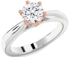 Diamond Rose Gold Silver Round Solitaire Engagement Ring
