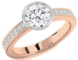 Diamond Rose Gold Silver Round Solitaire Pave Engagement Ring
