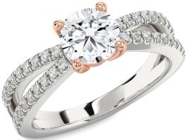 Diamond Rose Gold Silver Round Solitaire Pave Engagement Ring