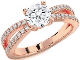 Diamond Rose Gold Silver Round Solitaire Pave Engagement Ring