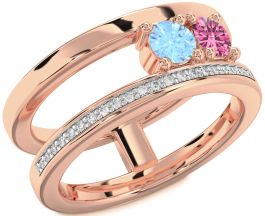 Diamond Rose Gold Silver Round Two Stone Promise Ring