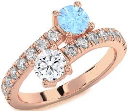Diamond Rose Gold Silver Round Two Stone Promise Ring