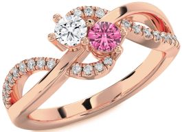 Diamond Rose Gold Silver Round Two Stone Promise Ring