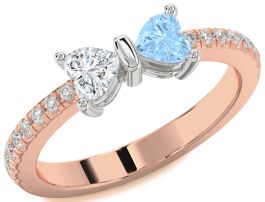 Diamond Rose Gold Silver Bow Two Heart Promise Ring