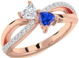 Diamond Rose Gold Silver Two Heart Promise Ring