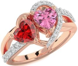 Diamond Rose Gold Silver Two Heart Promise Ring