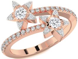 Diamond Rose Gold Star Round Two Stone Pave Ring