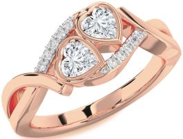 Symbolizing harmony and contrast, this exquisite gold Promise Ring features two vibrant heart-shaped stones—one deep red and the other lush green—gracefully nestled side by side. Framed by twin rows of shimmering accent diamonds, the band flows in a sculpted, interwoven design that mirrors unity and balance. A captivating piece perfect for expressing passion, growth, and unbreakable connection.