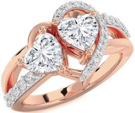 This elegant Promise Ring features two stunning heart-shaped stones set in a polished yellow gold band. Surrounding each gemstone is a sweeping arc of round-cut diamonds, adding radiant shimmer. The split-shank design offers a modern twist, while the dual-heart motif symbolizes love, connection, and unity. A perfect expression of romance and timeless elegance.
