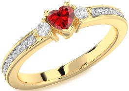 Diamond Ruby Gold Heart Three Stone Engagement Ring