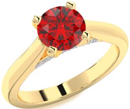Diamond Ruby Gold Round Solitaire Engagement Ring