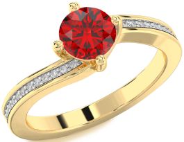 Diamond Ruby Gold Round Solitaire Pave Engagement Ring