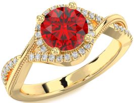Diamond Ruby Gold Silver Halo Round Vintage Engagement Ring