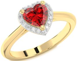Diamond Ruby Gold Silver Heart Halo Engagement Ring