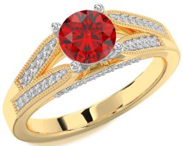 Diamond Ruby Gold Silver Round Vintage Engagement Ring