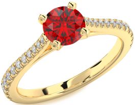 Diamond Ruby Gold Silver Round Solitaire Pave Engagement Ring