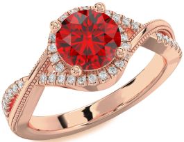 Diamond Ruby Rose Gold Halo Round Vintage Engagement Ring