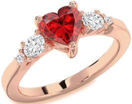 Diamond Ruby Rose Gold Heart Three Stone Engagement Ring