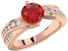 Diamond Ruby Rose Gold Round Solitaire Engagement Ring